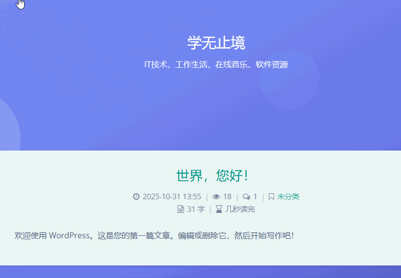首先设置鼠标跟随特效,将以下代码(AI就可以搞定)添加到文件footer.php中</body>前保存,该文件位于网站主题文件夹下,我的位于